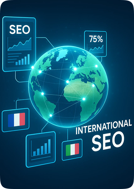 Stratégie multilingue et multirégionale pour conquérir les marchés étrangers. J'optimise votre structure technique, recherche des mots-clés spécifiques et adapte votre contenu culturellement pour chaque pays cible.